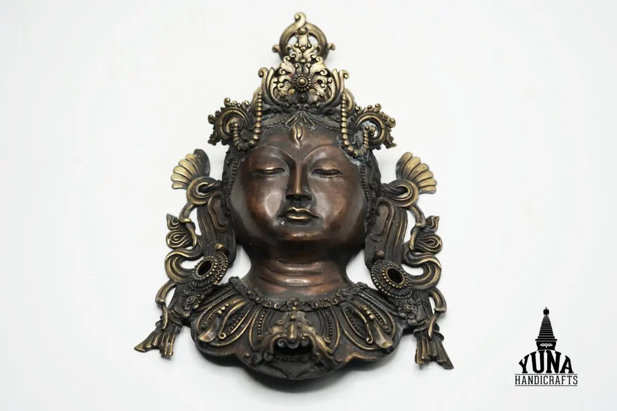 This is a plain handmade 13" Wall Hanging White Tara Buddha Mask made from brass.